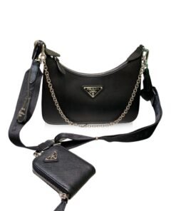 Prada Re-Edition 2005 Saffiano Leather Bag Black For Women, Women’s Bags 8.6in/22cm