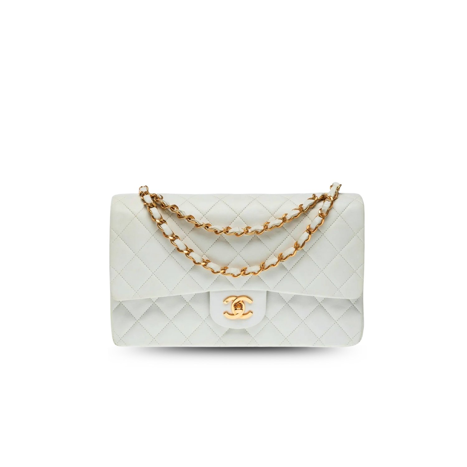 Chanel Classic Handbag Gold toned hardware White?For Women, Women’s Bags, Shoulder And Crossbody Bags 10.2in/26cm A01112