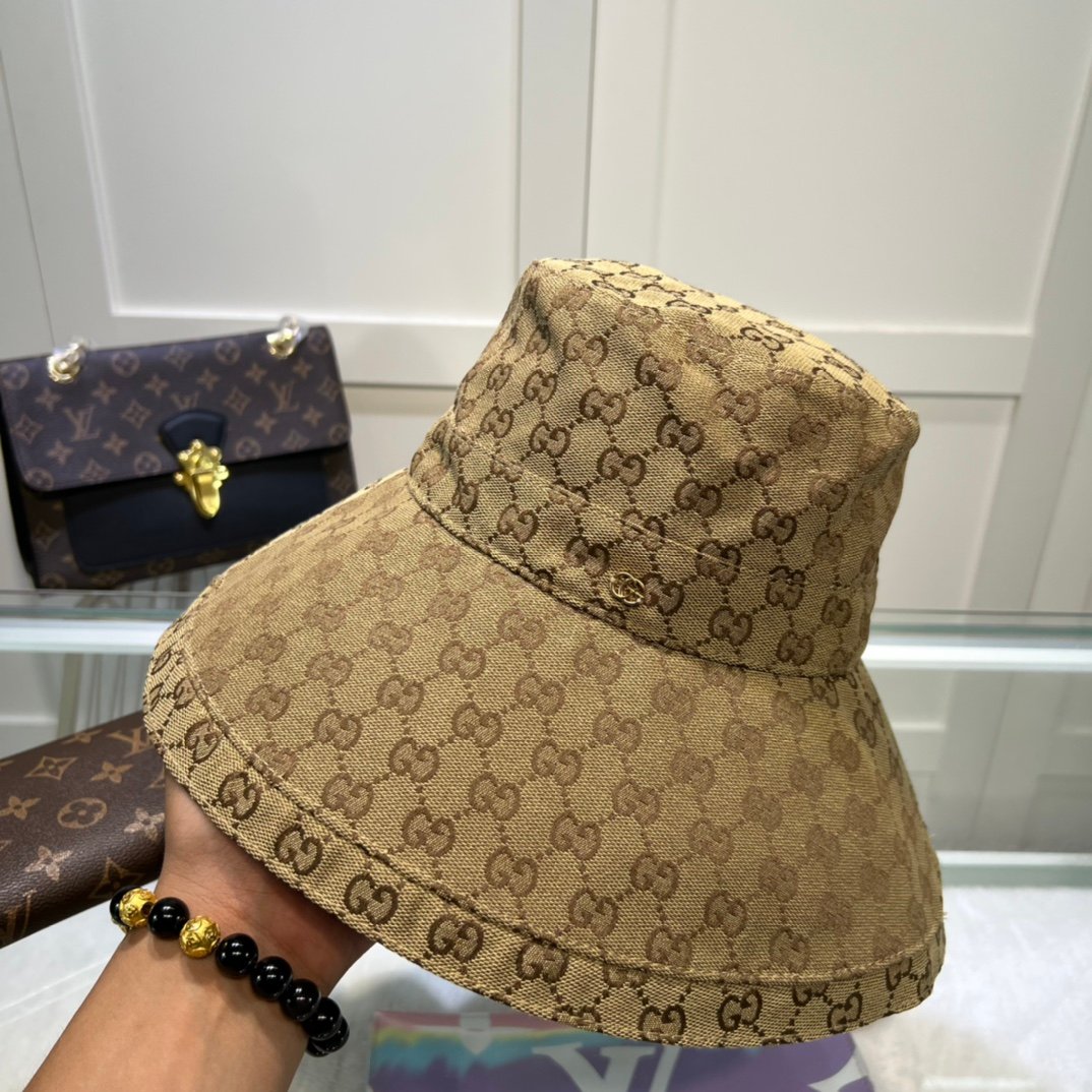 Gucci Eco Washed Denim Wide Brim Hat Beige GG Hat 631958 KQW00 9700