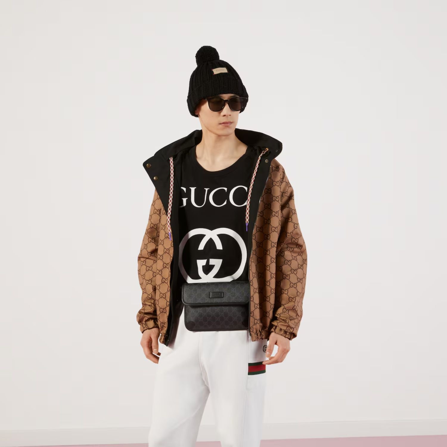 Gucci GG Black Belt Bag Black/Grey GG Supreme Canvas With Black For Men 9in/24cm GG ?598113 K5RLN 1095