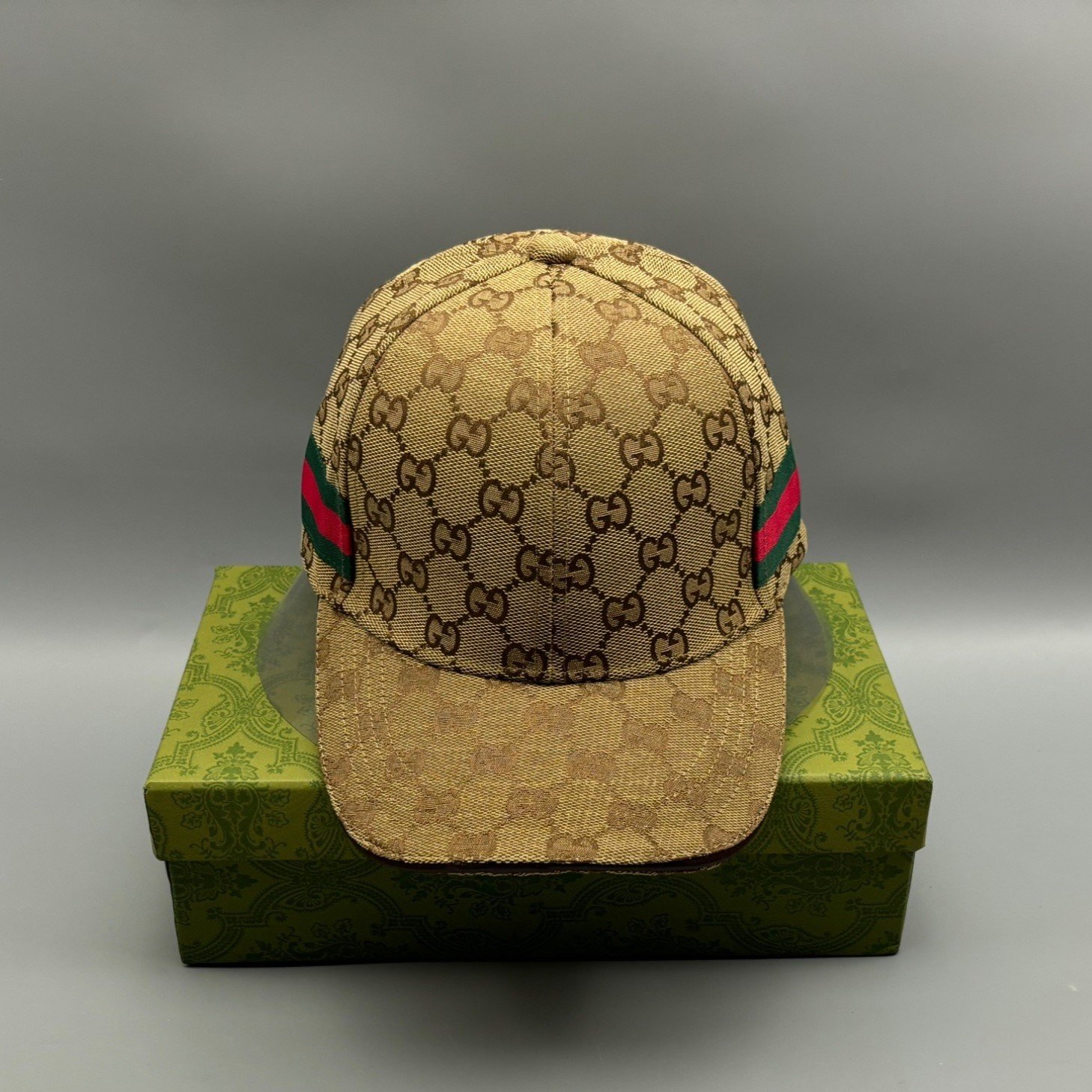 Gucci Original GG Canvas Baseball Hat With Web Beige GG Hat