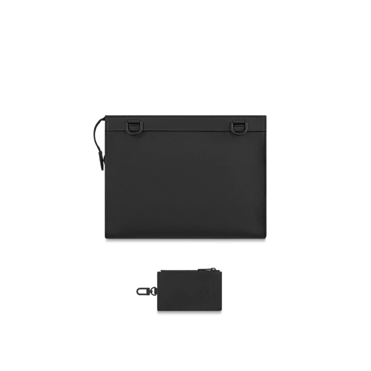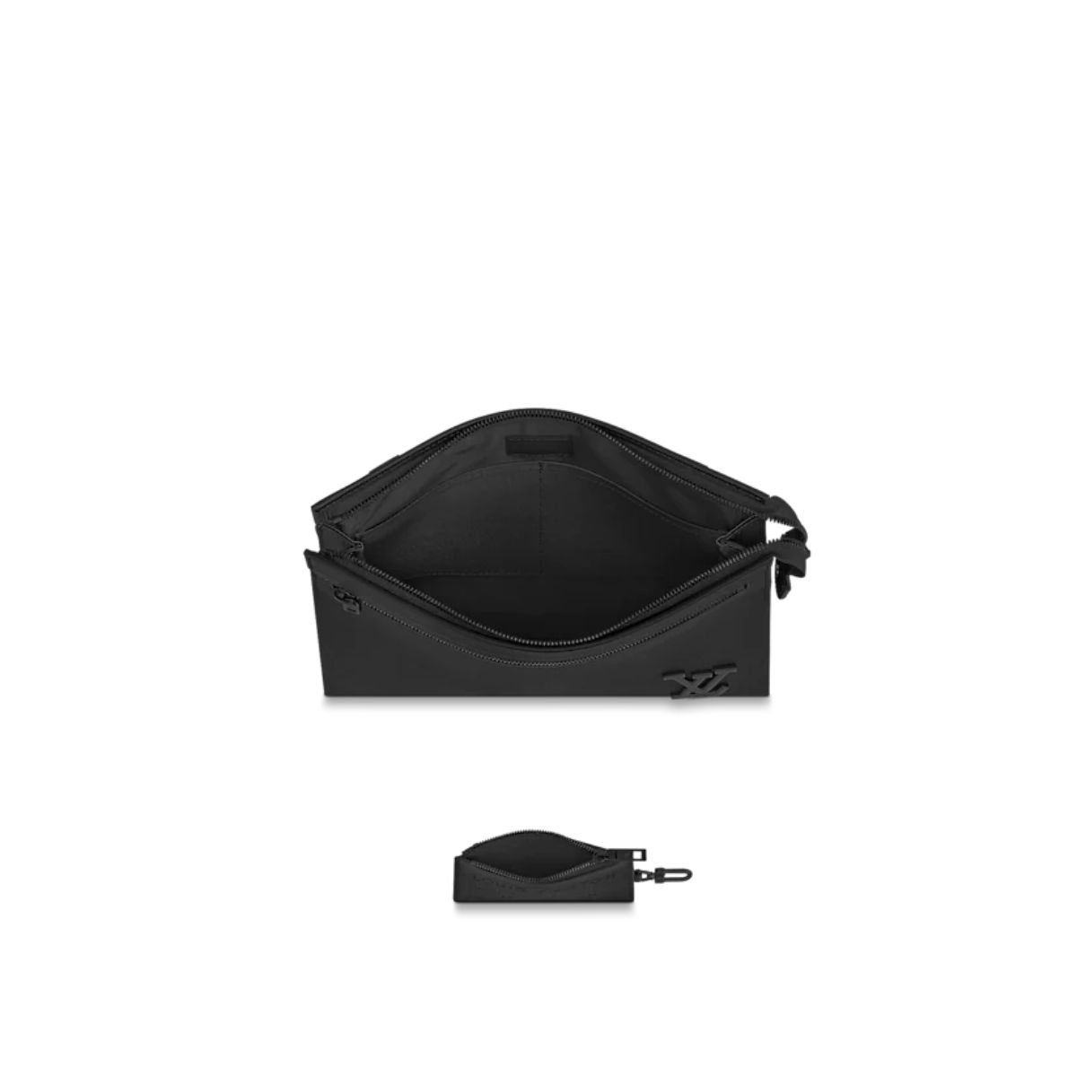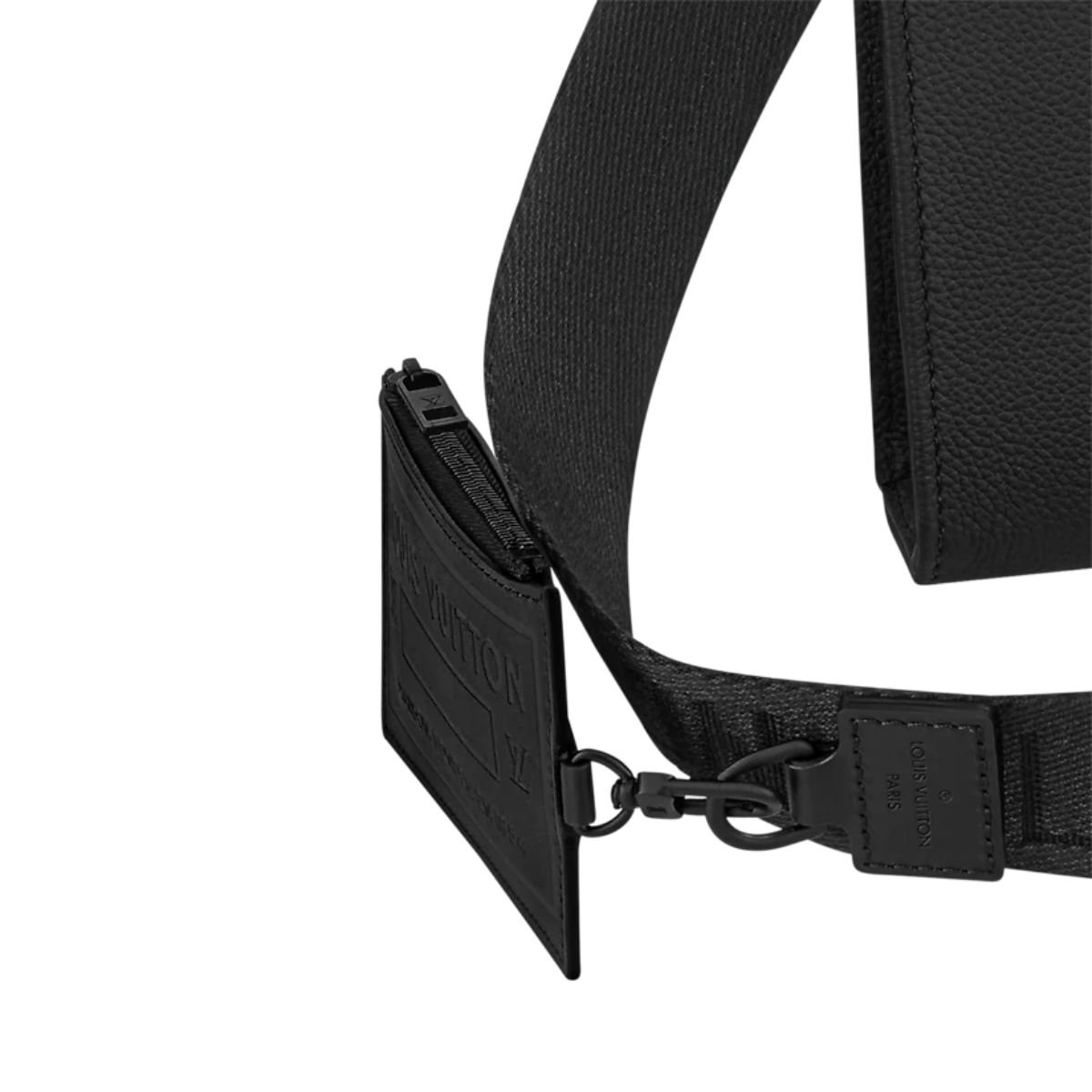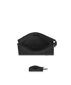 The new Messenger Voyage was inspired by Louis Vuitton?s bestselling Pochette Voyage, updated in keeping with today?s modular trend. Refined black Aerogram is enhanced with a signature strap and a metal ?LV? monogram. Its slim design is brimming with user-friendly details, like the removable tag on the strap that doubles as a card holder for easy contactless payment.