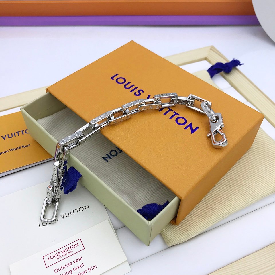 Louis Vuitton Monogram Chain Bracelet, Silver Tone for Men, M00308