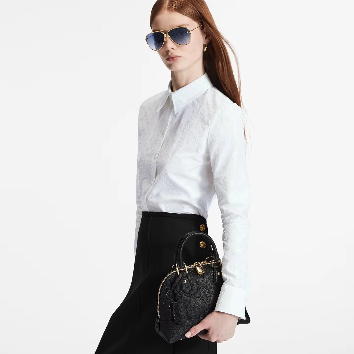 Fashioned from supple Monogram Empreinte with rounded top handles as well as a removable shoulder strap, the compact Neo Alma BB handbag makes the transition from day to evening seamlessly. The lining in a contrasting color and classic Louis Vuitton details such as the padlock and keybell make it both timeless and up-to-the-minute.