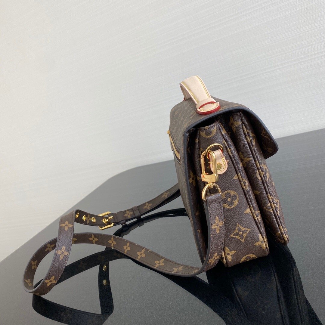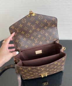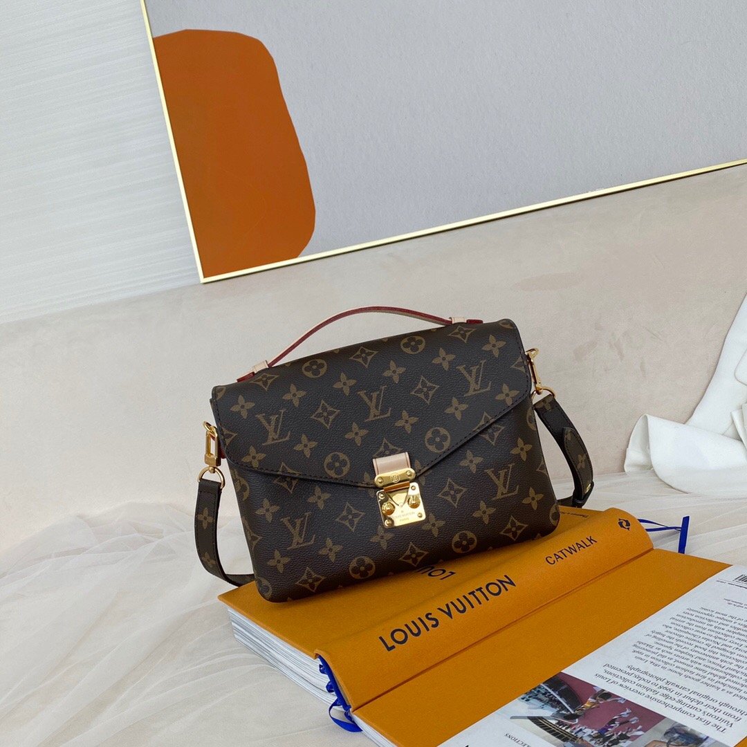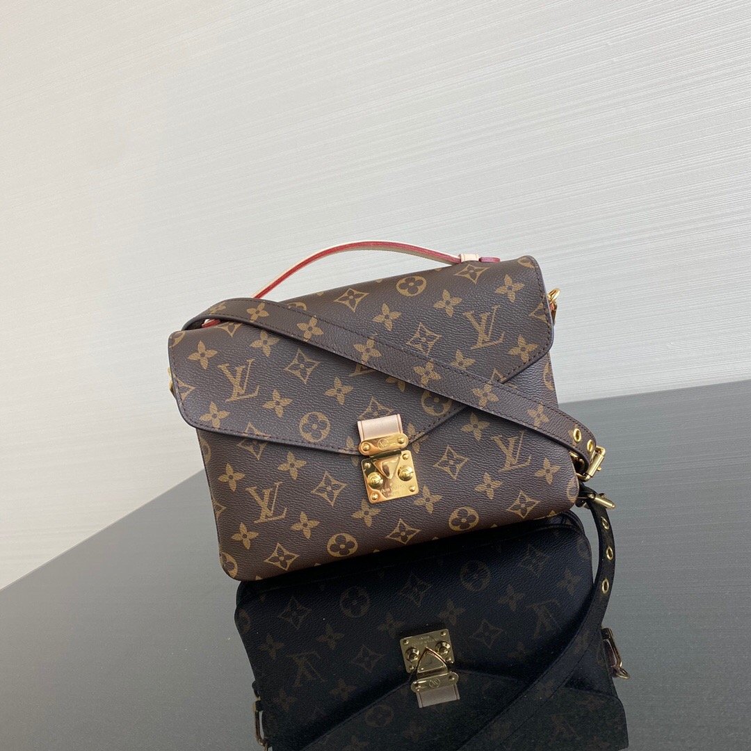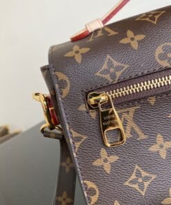 - With its on-trend satchel silhouette, the Pochette M?tis bag has become an object of fashion desire. This compact, go-everywhere model in the House?s Monogram canvas features a distinctive S-lock closure with a polished gold-tone finish. Versatile and unexpectedly roomy, it is fitted with a chic top handle and a long detachable strap for shoulder or cross-body wear.