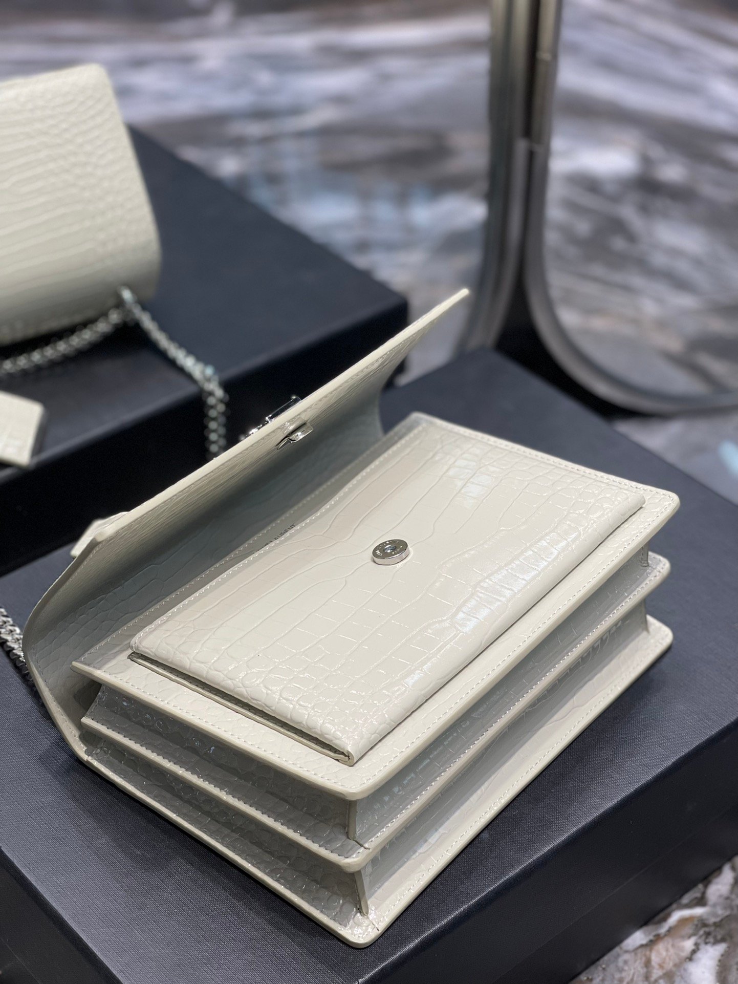 Saint Laurent Sunset Medium Chain Bag For Women 8in/20cm White YSL 442906DND0N9207